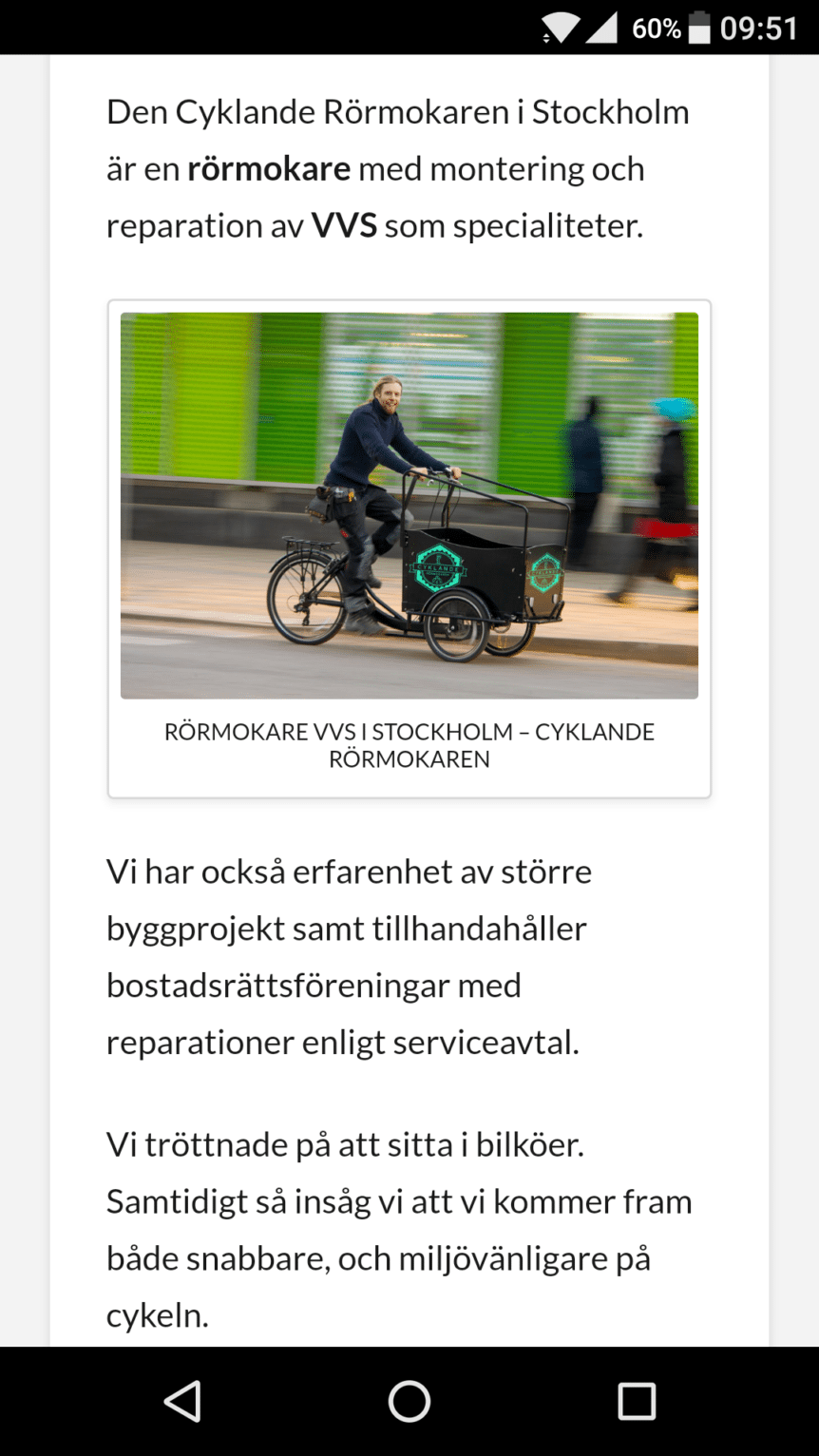 Idag hörde ännu en sajt av sig för att intervjua oss och denna gång var det snarare cykeln än VVS:en som lockade. Det var sajten Cyklamedlastcykel.se som bestämde sig för att intervjua Hugo om hur det är att jobba som rörmokare på cykel. Cyklamedlastcykel.se är en sajt som verkar för att fler människor ska cykla för att förbättra både den …