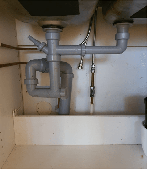Tag tydliga bilder där vi kan se rören och skåpets botten